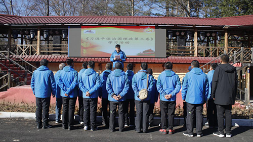 抓好理論教育,強化思想引領(lǐng)?;顒釉诰皡^(qū)運營黨總支副書記王慧君的動員下拉開序幕,北景區(qū)運營黨支部支部委員包秀江進行“學習習近平總書記考察吉林重要講話重要指示精神”宣講活動,帶領(lǐng)大家學習《習近平談治國理政第三卷》,并對掃黑除惡工作進行再部署,以黨的創(chuàng)新理論滋養(yǎng)初心、引領(lǐng)使命,指導實踐、推動工作。